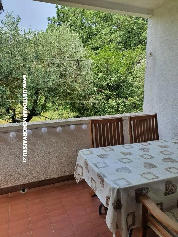 Przestronny apartament zlokalizowany na parterze. Łazienka z WC + osobne WC, pralka, duży zadaszony balkon z dużym stołem i krzesłami dla 6 lub więcej osób + taras ze stołem i krzesłami.