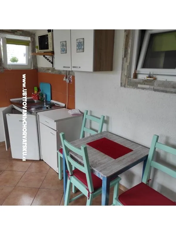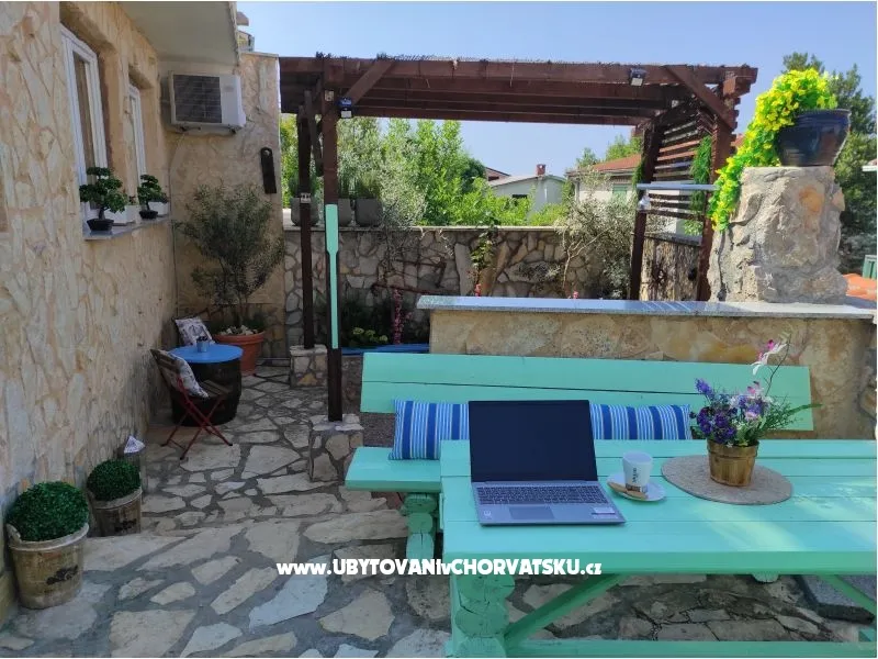 Ładne mieszkanie na parterze w domu rodzinnym, miło otoczeniu pełnym zieleni, duży taras, ogród, grill, parking, klimatyzacja, TV, Miejsce do cumowania łodzi. Wszystko dla spokojnego rodzinnego wypoczynku