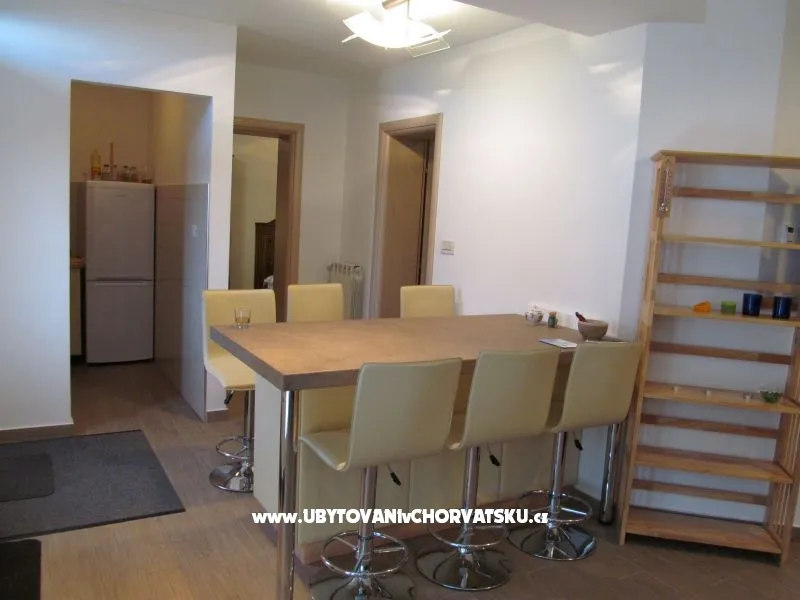 Budynek otoczony jest spokojem i śródziemnomorską roślinnością. Z tarasu roztacza się piękny widok na morze. Sam budynek położony jest w lesie sosnowym, 300 metrów od plaży i morza. W cenę apartamentu wliczona jest pościel, ręczniki, podatek turystyczny, naczynia, parking, pralka, zmywarka, wi-fi, klimatyzacja - wszystko jest wliczone w cenę.