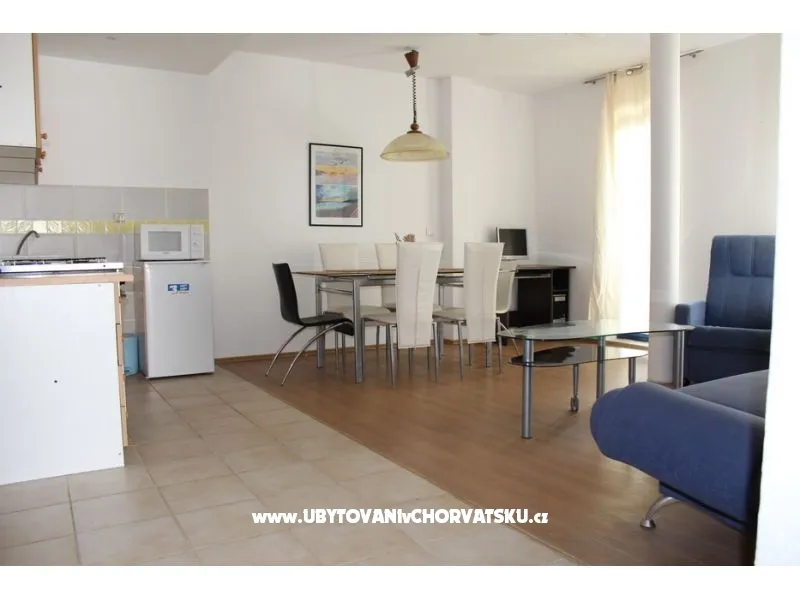 Pokój, dla 2 + 2 osób z kuchnią, WC z prysznicem i balkonem z tyłu domu. Goście tego pokoju mogą korzystać z frontowego balkonu, z którego roztacza się piękny widok na morze. Klimatyzacja jest również dostępna za opłatą 5 Eur/dzień.