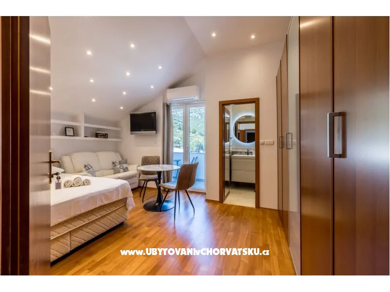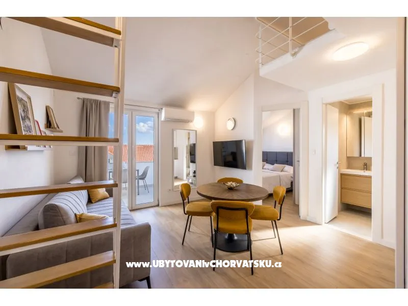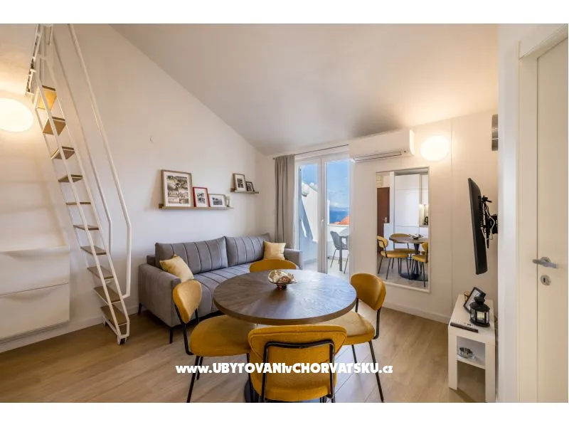 Zakwaterowanie Bolotel – dwa wygodne apartamenty w spokojnej części Bolu Witamy w Bolotel, nowocześnie urządzonych jednostkach idealnych dla par, rodzin lub przyjaciół, położonych w spokojnej części Bolu na wyspie Brač. Do dyspozycji są dwa apartamenty: Studio apartament – przytulne i nowo wyremontowane miejsce dla dwóch osób z prywatnym balkonem z widokiem na góry i częściowym widokiem na morze. Wyposażone jest w klimatyzację, kuchnię, łazienkę i prywatny parking. Znajduje się zaledwie 50 metrów od sklepu i 10–15 minut spacerem od centrum, plaż i promenady. Większy apartament z antresolą – przestronny apartament idealny dla dwóch dorosłych i dwojga dzieci w wieku od 12 do 17 lat. Dysponuje oddzielną sypialnią, galerią (antresolą) z dodatkowymi łóżkami, dużym balkonem z widokiem na morze, dwoma klimatyzatorami, w pełni wyposażoną kuchnią z piekarnikiem, łazienką z pralką i prywatnym parkingiem. Oba apartamenty oferują bezpłatne Wi-Fi. Osobiście was powitamy i zadbamy, aby wasz pobyt był komfortowy i bezproblemowy.