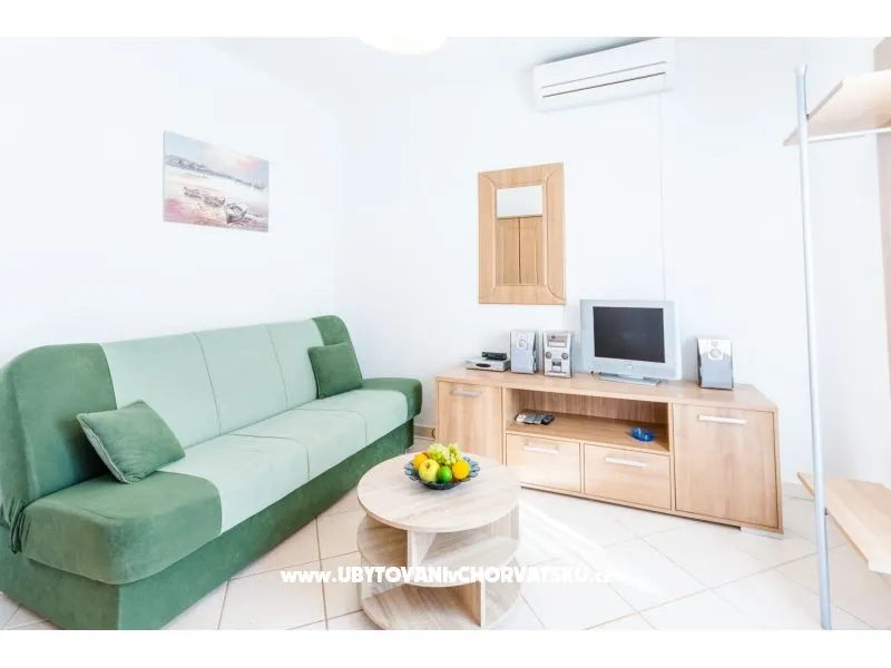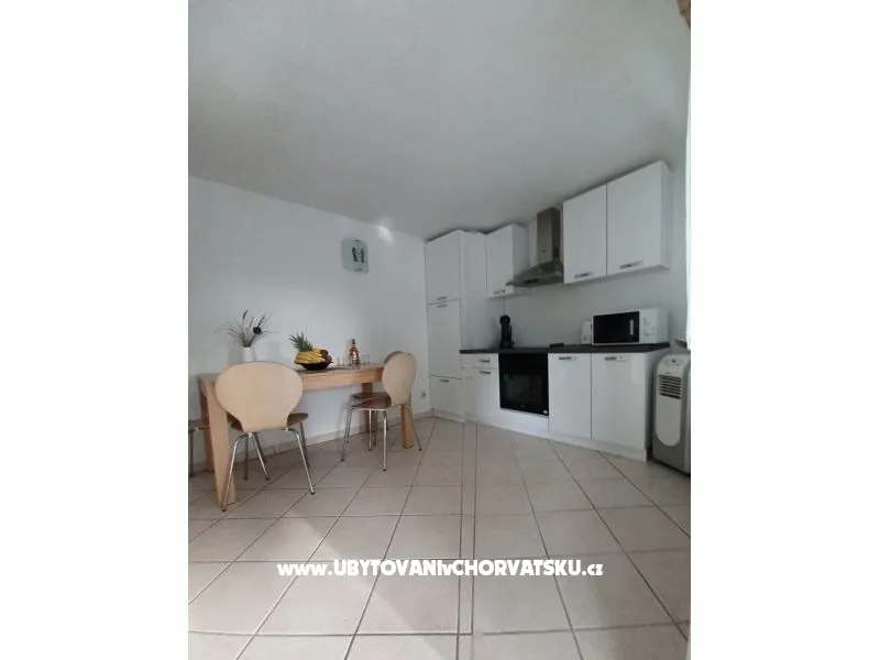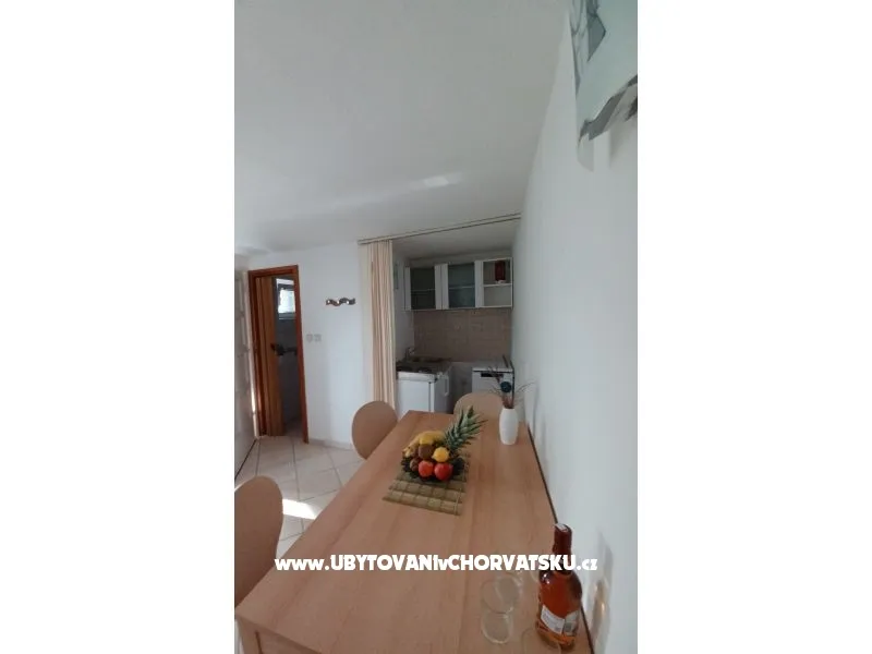 Villa Klara - AP1 to jednopokojowy apartament składający się z kuchni, salonu, sypialni, łazienki z toaletą i prysznicem oraz tarasu z widokiem na morze o powierzchni 40 m?. Wyposażony w komplet naczyń, sztućców i pościel dla trzech osób.