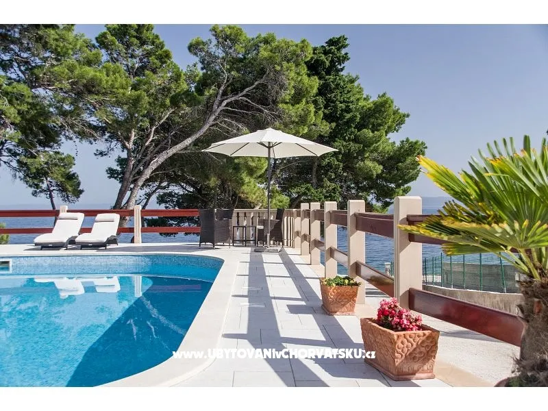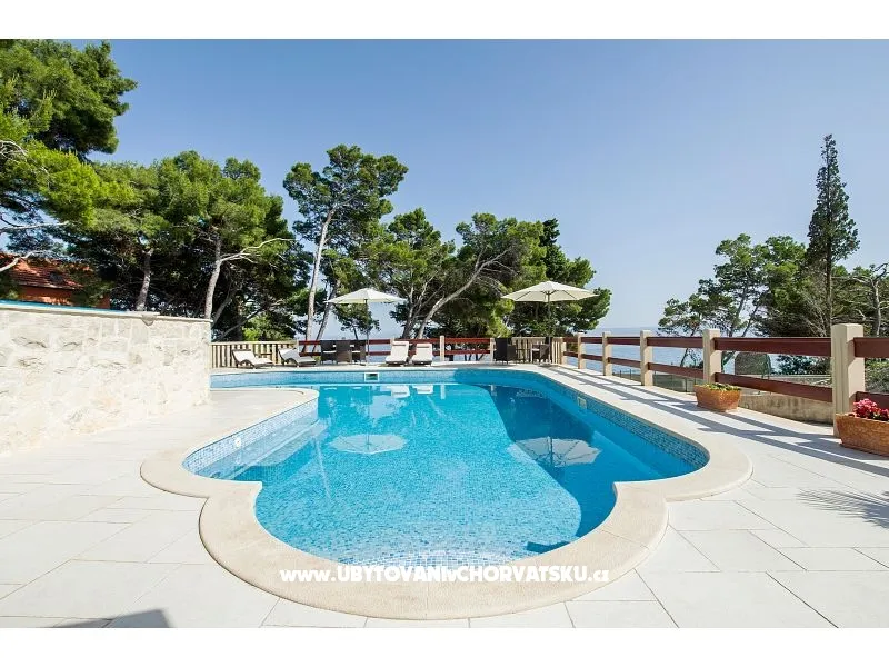 Dom z prywatnym basenem o powierzchni 75 m2, dziewięcioma klimatyzowanymi apartamentami i prywatnym bezpłatnym parkingiem w cieniu lasu sosnowego, położony jest w spokojnej części Sumartin z pięknym widokiem na morze, wyspy, Biokovo, Hvar i Pelješac . Obiekt położony jest tuż przy plaży, dwadzieścia metrów od morza i skierowany jest na południe. Łącznie dziewięć klimatyzowanych apartamentów...