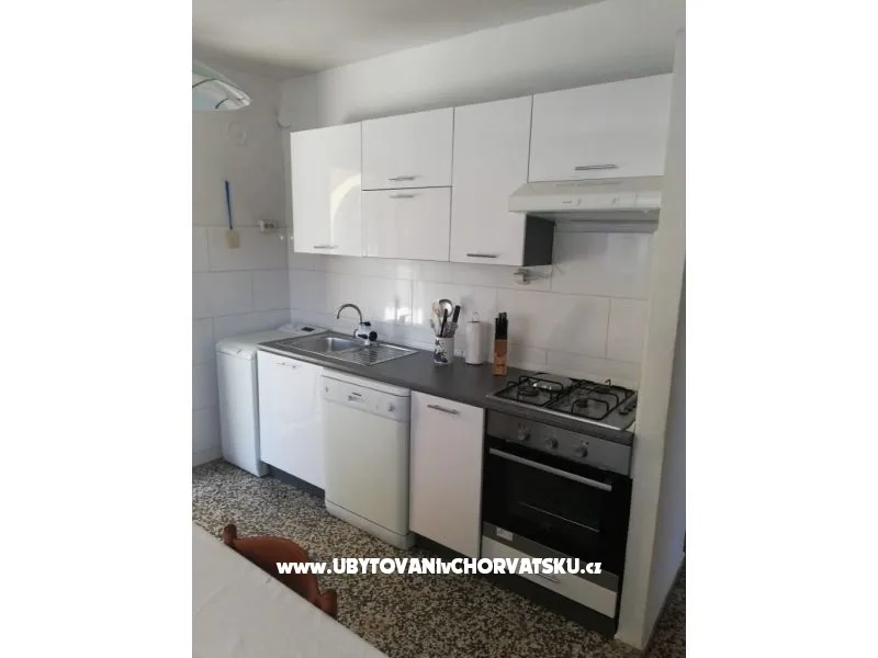 Mieszkanie znajduje się w spokojnej zatoce nad morzem.Apartament posiada trzy sypialnie, kuchnia wyposażona jest we wszystko, czego potrzebujesz. Wychodzenie tam kuchnia jest zadaszony obszar, w którym jest stół, krzesła, telewizor, oraz w pobliżu grilla. Chodzenie po schodach mijamy ogród, kwiaty, dzieci, huśtawka, prysznic na świeżym powietrzu i dostać się do drzwi, które oddziela nas od plaży. Na plaży jest parasol ze stołem i krzesłami, i leżaki. Tuż obok plaży możliwe jest zacumować łódkę. Jako dodatkiem można korzystać ze zmywarki i pralki. Każdy pokój posiada telewizor, łazienkę z suszarką do włosów, a przed domem są 25m2 tarasy z stołem i krzesłami do użytku. Wszystko to jest wliczone w cenę, jak również klimatyzację, taksówkę, parking, internet. Możesz zaprosić (daj nam znać) Twojemu przyjacielowi na spotkania towarzyskie lub wyżywienie w mieszkaniu przez 1-2 godziny i na plaży dłużej. Zameldowanie po godzinie 14:00 Wyjazd z mieszkania do godziny 09:00 Dopłata 10 euro dla więcej niż 4 dorosłych w mieszkaniu. Apartament przeznaczony jest dla 4 osób dorosłych i 2 dzieci.