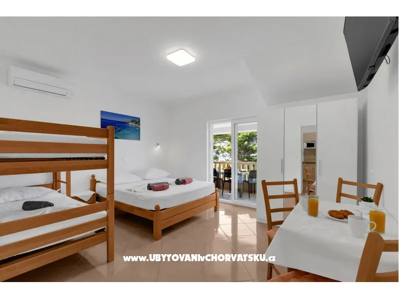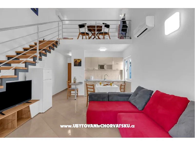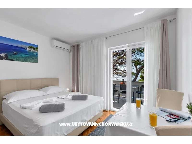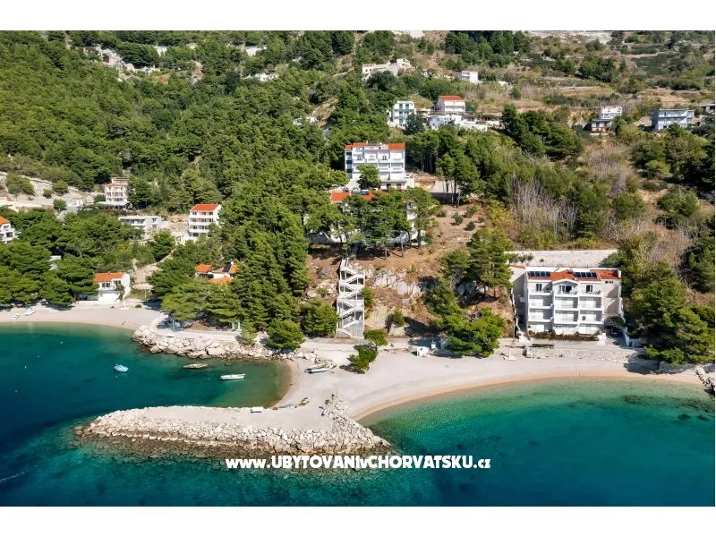 Dom z 13 apartamentów, położonych tuż przy plaży, tylko zakładowego schody od pięknej żwirowej plaży. W domu znajduje się duży taras z grillem, które wszyscy goście mogą korzystać. Goście mają bezpłatny parking i Wi-Fi.