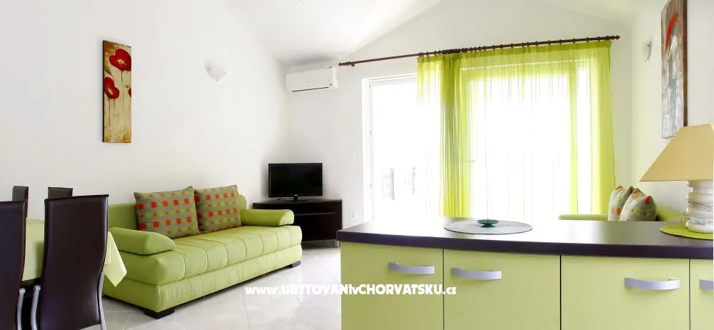 Oferujemy 6 apartamentów. Każdy apartament wyposażony jest w klimatyzację, kuchnia i WC. Wszystkie apartamenty mają widok na morze. Apartamenty są przestronne i komfortowe środowisko. Dla wszystkich naszych gości mamy zapewnione miejsce parkingowe.