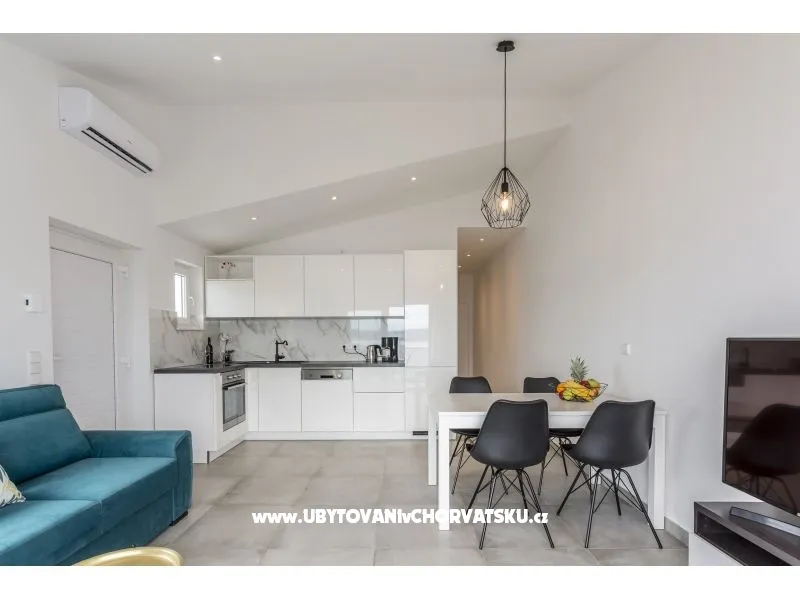 Ładny i nowo urządzony apartament z widokiem na morze, taras o powierzchni 50 m2 + 30 m2; blisko plaży i morza (2minuty), restauracji i kawiarni (2minuty), supermarketu i mini marketu owocami i warzyw