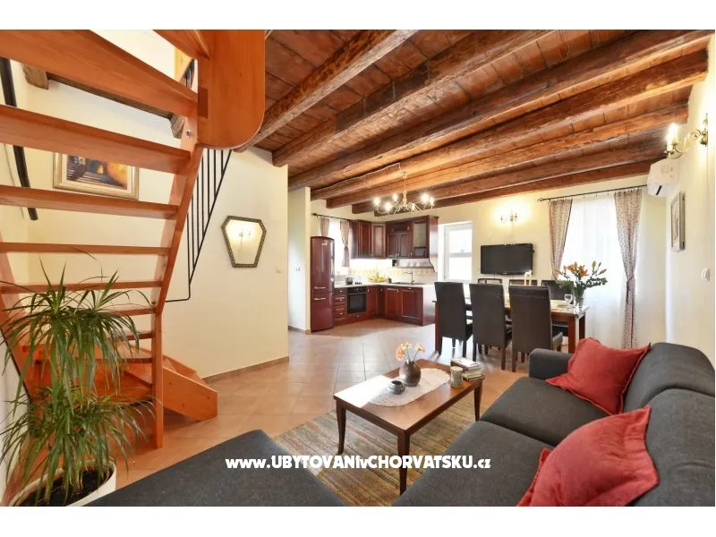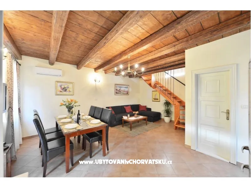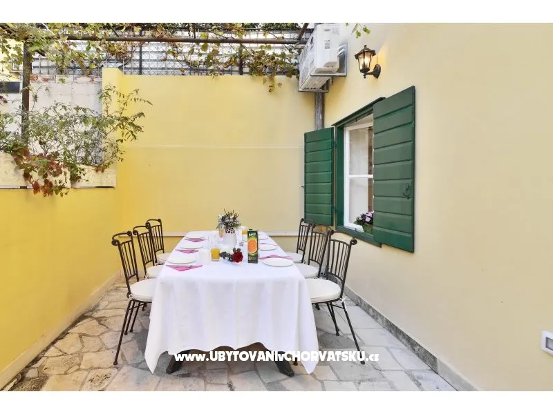 Dom w Omis, zaledwie trzydzieści metrów od oznaczonej Błękitną Flagą plaży, w spokojnej okolicy, z dala od zgiełku i dróg.Mieszkanie jest urządzone w nowoczesnym stylu rustykalnym - i jest w pełni wyposażone. Składa się z parteru z kuchnią, jadalnią i salonem oraz dużą łazienkę z pralką, a na pierwszym piętrze są trzy sypialnie i druga łazienka.Dom posiada ogród z grillem i stołem dla dziesięciu osób. Pojemność wynosi 6 3 osoby, ponieważ sofa z materacem na parterze rozciąga się na 2 +1 osób.Kuchnia jest wyposażona w sprzęt AGD i naczynia, w tym zmywarką, parterze i pierwszym piętrze są klimatyzowane i wyposażone w sejf, internet, TV SAT. Materace są najlepsze - ortopedyczne, pościel jest wyjątkowa - ręcznie związany. Parking bezpieczny dwadzieścia metrów od domu. Wszystkie (opłata klimatyczna, klimatyzacja, parking ..) jest wliczone w cenę.