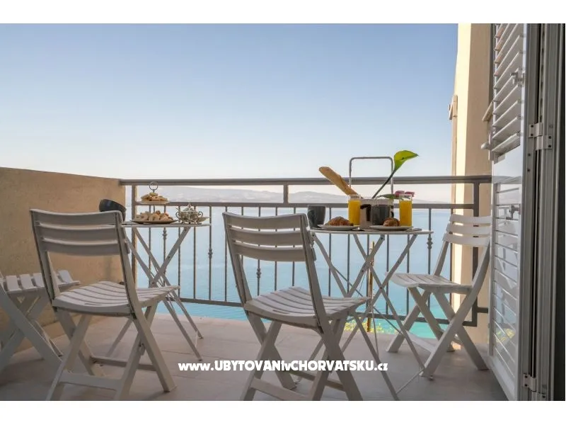 Apartamenty Sonata składają się z 4 apartamentów. Apartament OPERA posiada 3 sypialnie, 3 łazienki, dużą kuchnię / salon i duży taras o powierzchni 40 m2 z widokiem na morze. Apartament SONATA posiada 3 sypialnie, 3 łazienki, kuchnię / salon, balkon i taras z widokiem na morze. Apartament RONDO posiada 2 sypialnie i 2 łazienki, kuchnię, salon, taras i balkon z widokiem na morze. Apartament ARIA posiada 2 sypialnie i 2 łazienki, salon i kuchnię oraz 2 mniejsze balkony z widokiem na morze. Apartamenty są duże i mogą pomieścić od 2 do 3 rodzin. Do każdego mieszkania przynależą co najmniej 2 miejsca parkingowe. Cena obejmuje sieć WIFI, parking i klimatyzację. Dom położony jest w spokojnej dzielnicy Omis, 4 km od centrum. W pobliżu znajdują się supermarkety i restauracje. (5min pieszo).