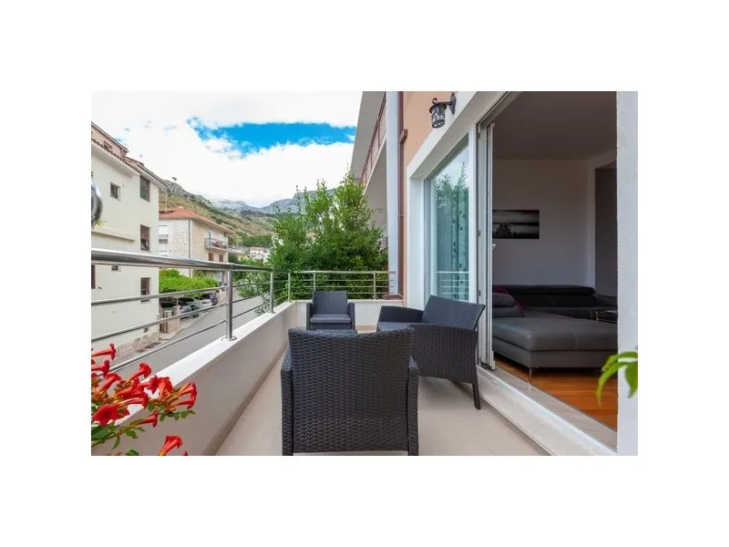 Apartament "L&L" dla 4 osób. Mieszkanie znajduje się na 1 piętrze. Składa się z dwóch sypialni, łazienki oraz salonu z kuchnią i jadalnią. Apartament posiada widok na morze. Wyposażenie: klimatyzacja, tv, WI-FI, pralka, zmywarka ...