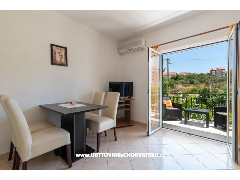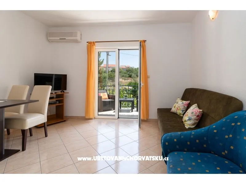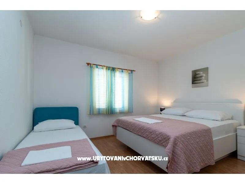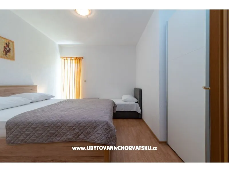 150 m od plaży, pierwsze piętro, 2 balkony, widok na zieleń, 1 sypialnia, klimatyzacja, TV SAT, pralka (wspólna), wi-fi (darmowe), prywatny parking, ogród