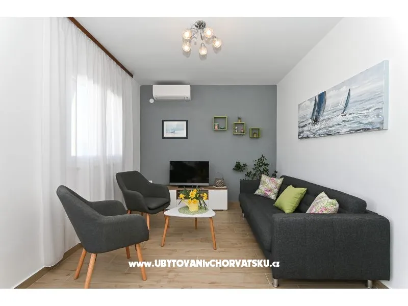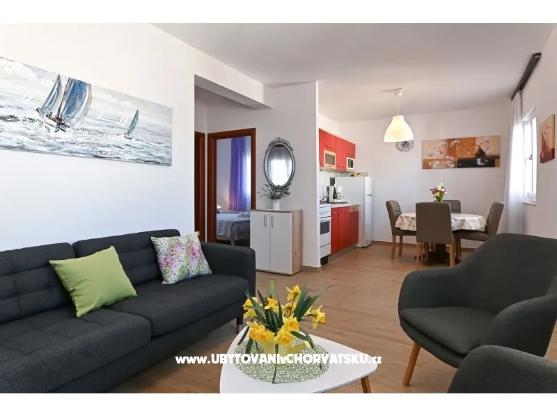 60m od plaży, pierwsze piętro, widok na morze, balkon, 2 sypialnie, klimatyzacja, TV SAT, pralka (właścicielka), bezpłatnie, wi-fi, grill na świeżym powietrzu, prywatny parking,