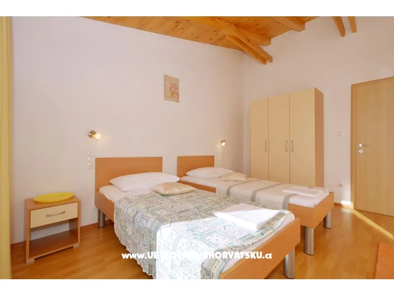 Za każdą rezerwację płacisz 15% depozytu + opłata rezerwacyjna. Reszta płatna po przybyciu do obiektu. W sezonie głównym minimalny pobyt to 6 nocy. W przypadku apartamentu Pavko 1 przyjazdy i wyjazdy możliwe są wyłącznie w weekendy w sezonie głównym. Zameldowanie możliwe jest od godziny 14:00; Wymeldowanie do godziny 10:00 Pralka (u właściciela) - za dodatkową opłatą 10 € za pranie. Na życzenie łóżeczko dziecięce. Obiekty zewnętrzne: grill na świeżym powietrzu, prywatny parking Znajduje się 90 m od plaży (rodzaj plaży: żwirowa)