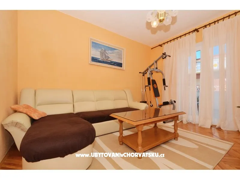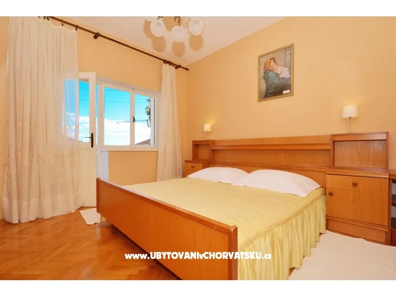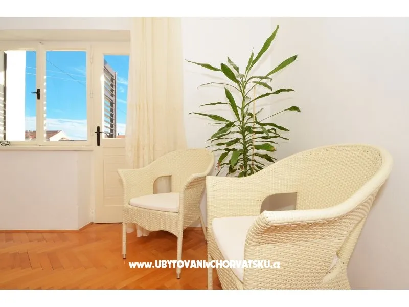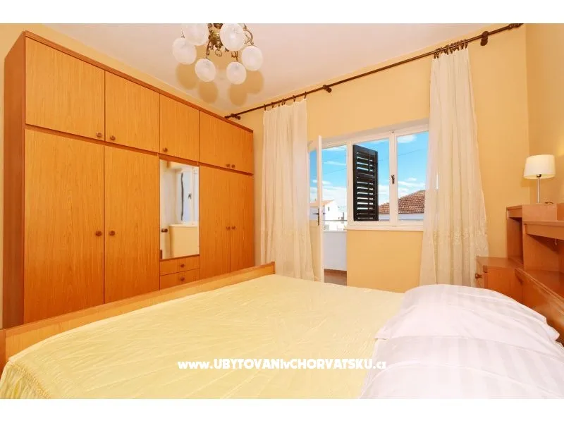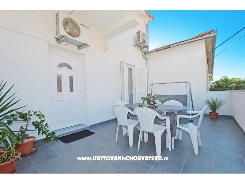 71 m2 + 35 m2 balkon + taras, drugie piętro 2 sypialnie, 1 łazienka z prysznicem W pełni wyposażona kuchnia Klimatyzacja, Wi-Fi Prywatny parking, grill Zwierzęta akceptowane na życzenie 900m od plaży