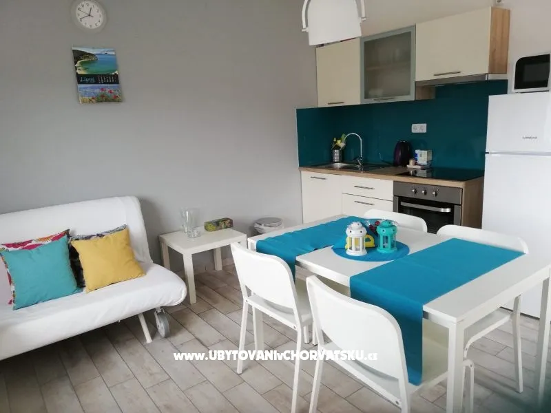 kwatera na parterze z tarasem. Lozko malzenskie 160 x 200 cm, duza szafa, stol i krzesla, aneks kuchenny, ladna lazienka z kabina prysznicowa. ladne i nowoczesne wyposazenie, internet, klimatyzacja. Ogrodek przy apartamencie ogrodzony i dostosowany d