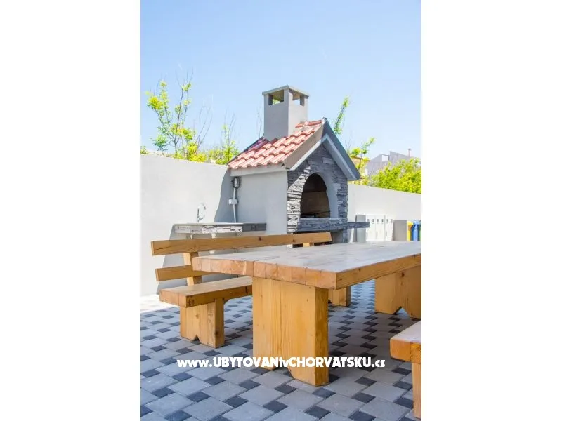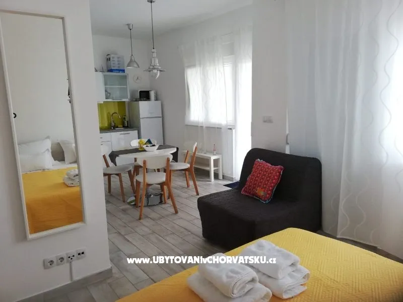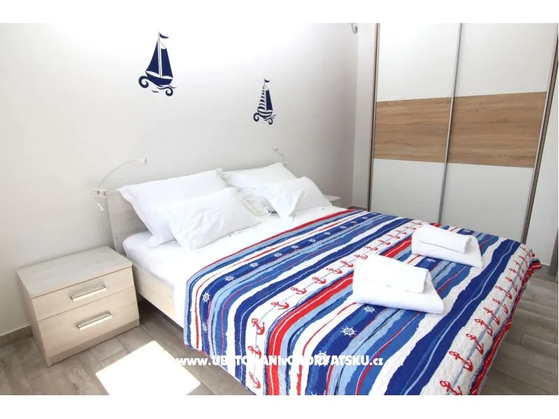 Nowy dom wybudowany w 2016 roku, z apartamentami na podwyzszonym poziomie. Z tarasow widok na morze, klimatyzacja, internet, sejfy, Tv sat, wygodne lozka. Czesta wymiana poscieli i recznikow.Monitorowany parking. Na parterze recepcja ktora dba o Wasz urlop.