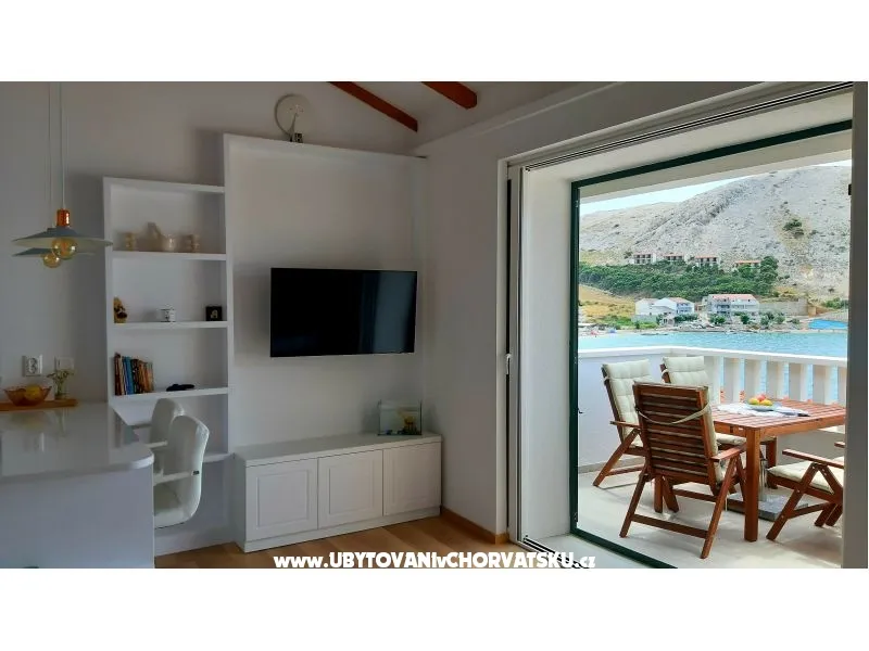 Piękny nowo wyremontowany apartament, w pełni umeblowany, z tarasem z widokiem na całą zatokę. Ogród i plaża przed domem.