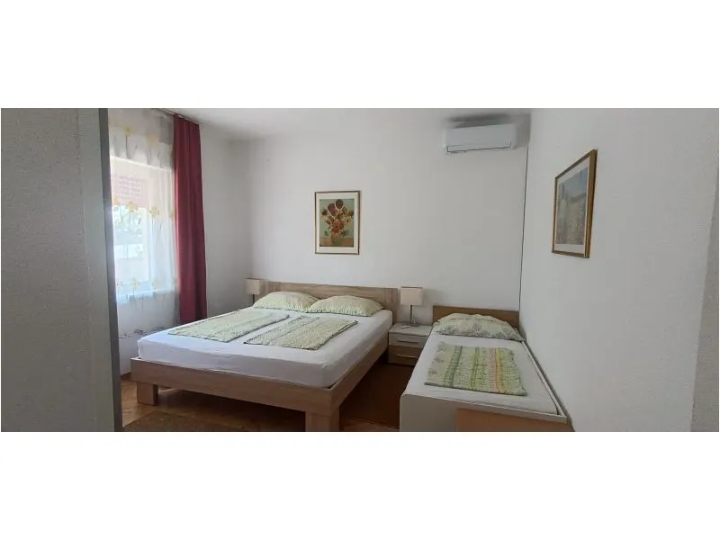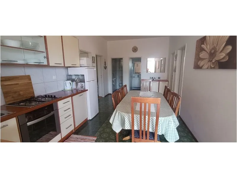 3 sypialnie, salon, kuchnia, 2 x toaleta + prysznic, zadaszony taras i widok na morze. Jest na piętrze, z osobnym wejściem. Parking na podwórku. Nadaje się dla 1/2/3 rodziny. Leżaki w ogrodzie, basen dla dzieci <10 lat i grill