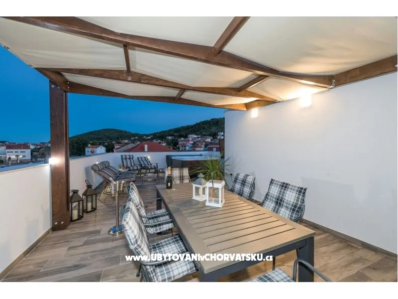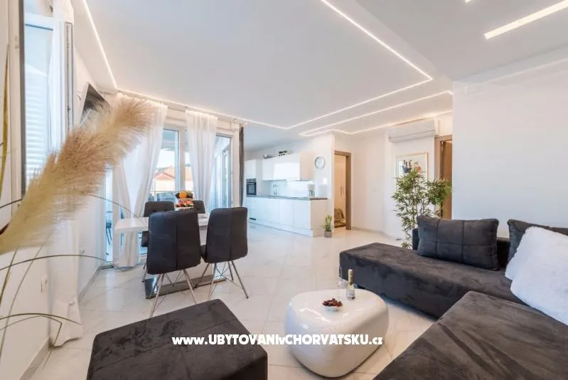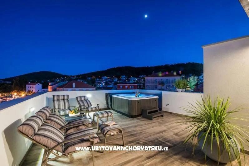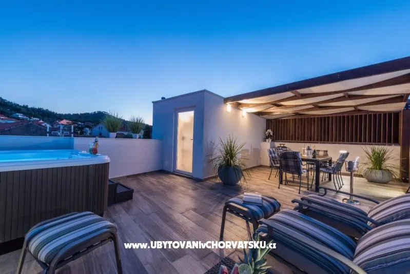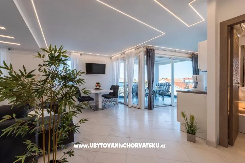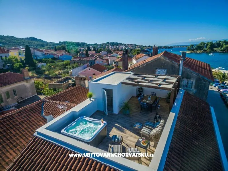2 apartamenty deluxe z tarasem na dachu i wanną z hydromasażem. Najlepszy widok na morze i miasto Zadar. Apartamenty są nowe i nowocześnie urządzone, w centrum miasta i 5 m od morza.
