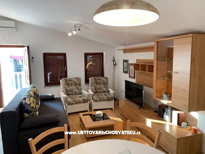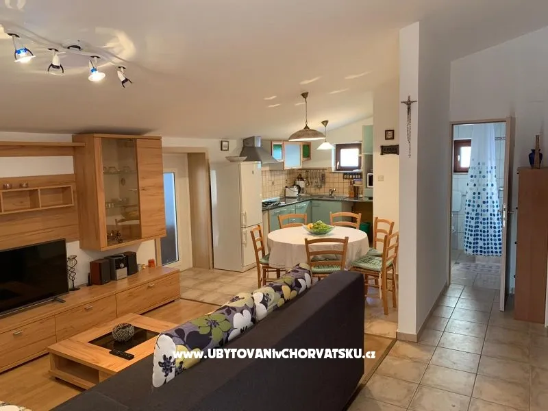 Wynajmujemy apartamenty na wyspie Vir.Mieszkanie posiada 3 sypialnie, łazienka, kuchnia, jadalnia i salon i taras z widokiem na morze.Apartament jest klimatyzowany, z TV i SAT, i inne udogodnienia.Mieszkanie jest wynajmowane od 1.5 . do 1,11