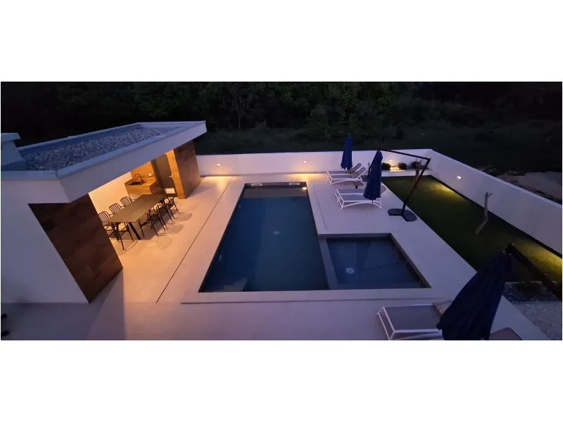 Nowo wybudowana willa w spokojnej ślepej uliczce, z 4 sypialniami i łazienkami, basenem, letnią kuchnią z grillem. Wszystko to sprawia, że ??ta willa jest idealnym miejscem dla tych, którzy lubią letnie spotkania na świeżym powietrzu, kolacje pod gwiazdam